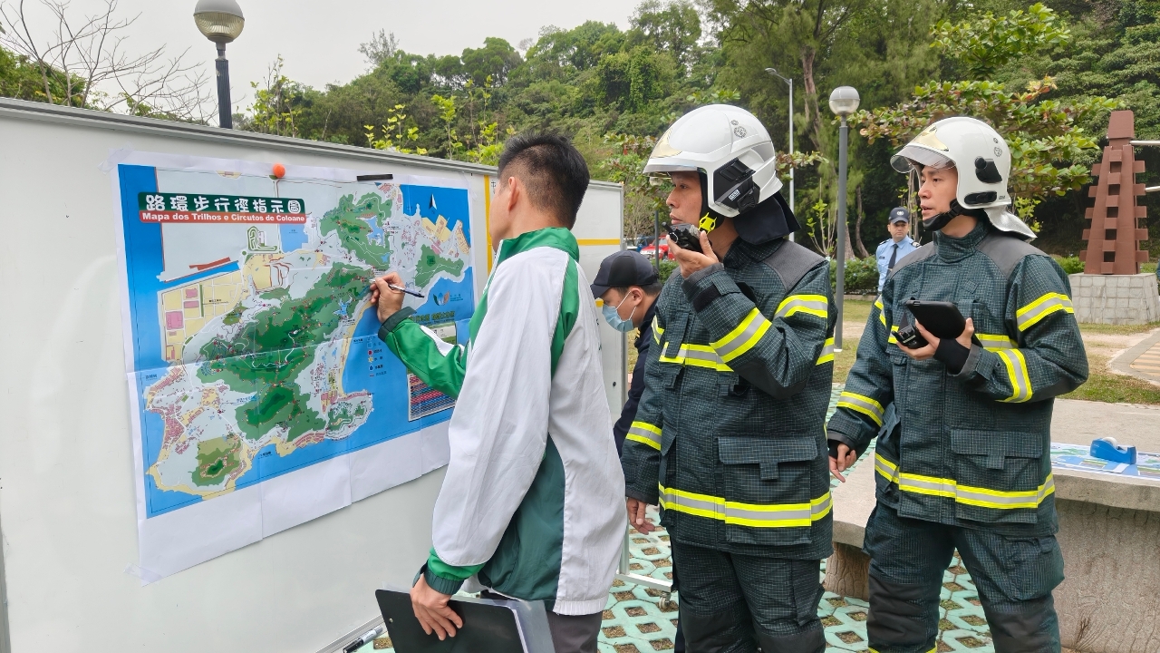 Para reforçar a segurança contra incêndios florestais e melhorar a capacidade de resposta, coordenação e comunicação em caso de acidente, o Corpo de Bombeiros (CB) realizou, no dia 4 de Dezembro de 2025, na parte da manhã, em conjunto com o Instituto para os Assuntos Municipais (IAM) e o Corpo da Polícia de Segurança Pública (CPSP), um exercício conjunto de resposta a emergência de incêndio florestal, no Trilho do Altinho de Ká-Hó, Coloane.
