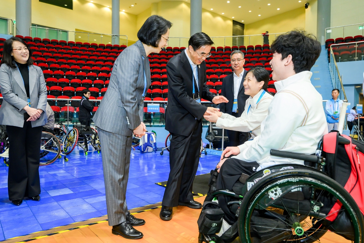 O Coordenador da Comissão Organizadora dos Jogos Olímpicos Especiais para Deficientes e Presidente da Federação de Pessoas Portadoras de Deficiência da China, Cheng Kai e a sua delegação visitaram Macau entre os dias 12 e 13 de Dezembro, para assistir aos jogos de modalidade de badminton da Zona de Competição de Macau dos Jogos Olímpicos Especiais para Deficientes, bem como visitar as competições da Zona de Competição de Macau e discutir o desenvolvimento do desporto no futuro para pessoas portadoras de deficiência com a Presidente da Comissão Organizadora da Zona de Competição de Macau dos Jogos Olímpicos Especiais para Deficientes e Secretária para os Assuntos Sociais e Cultura, O Lam.
