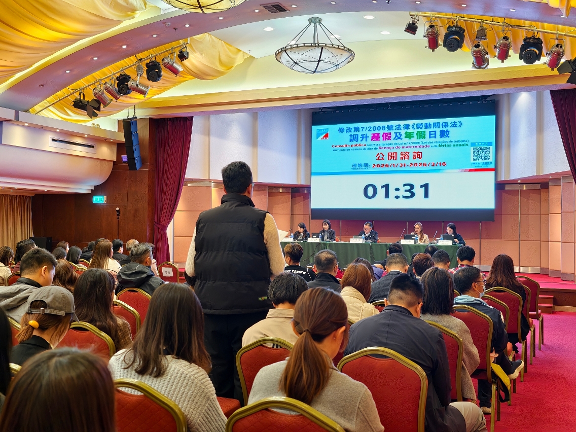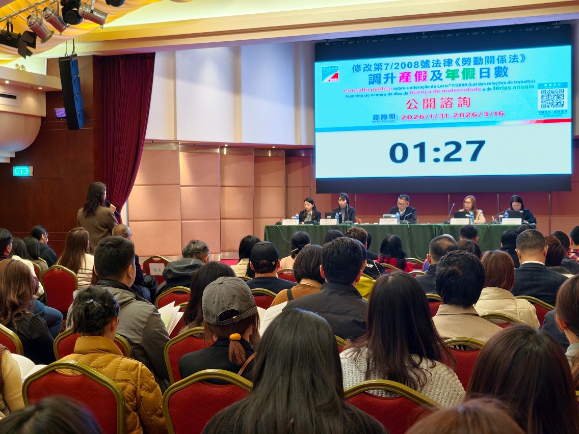 As primeiras três sessões de consulta contaram com a presença de mais de 300 representantes de associações e cidadãos, nas quais muitos participantes usaram da palavra e concordaram, de modo geral, que o aumento do número de dias de licença de maternidade e de férias anuais contribui para facilitar os trabalhadores uma melhor conciliação entre a família e o trabalho, elevando a qualidade da vida e as condições laborais. Os participantes também apresentaram várias opiniões e sugestões, incluindo o subsídio complementar à remuneração paga na licença de maternidade passa a ser uma medida permanente, o aumento do número de dias iniciais e do número máximo de férias anuais, e o estudo sobre o aumento do número de dias de licença de paternidade. Houve ainda participantes que prestaram atenção à pressão de exploração de actividade das empresas, resultante do ajustamento do número de dias de férias. A DSAL agradece a todos os participantes pela sua presença e por usarem da palavra activamente, sendo que, irá efectuar a uma ponderação integral das opiniões dos diferentes grupos da sociedade, procedendo a um estudo prudente, de acordo com a situação real de Macau, no sentido de promover os trabalhos de revisão da lei em causa.