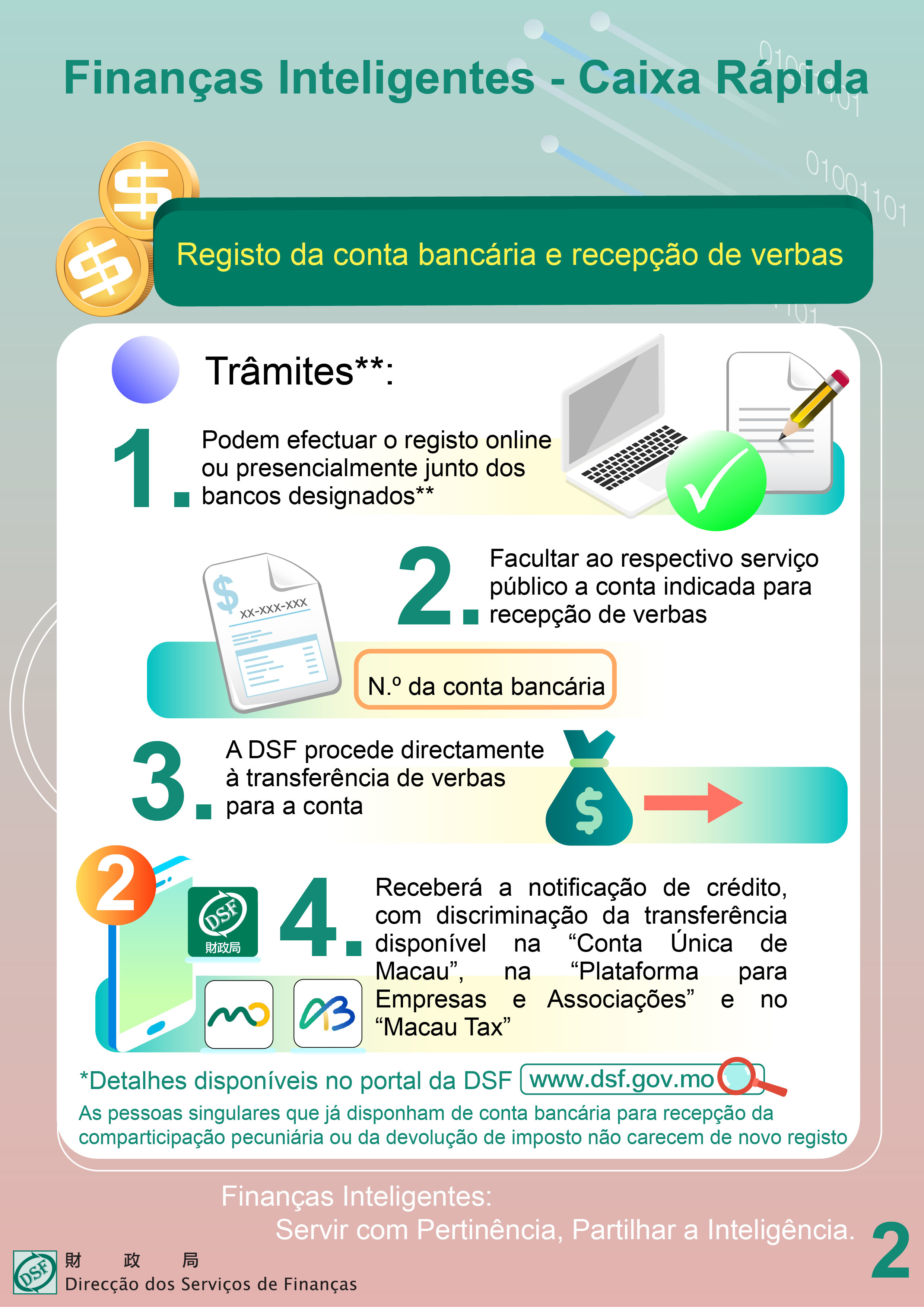 • 【Facilitar em prol dos cidadãos e das empresas】“Finanças Inteligentes ‧ Caixa Rápida” Recepção de verbas por transferência bancária disponível a partir de Março_3