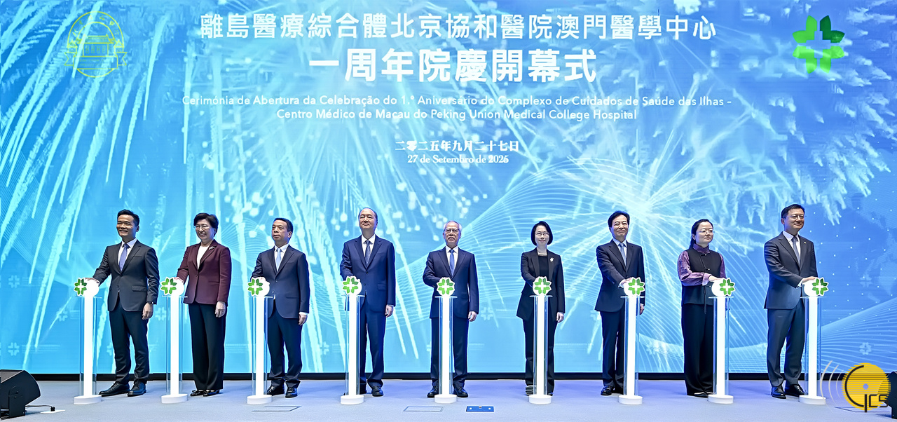 行政长官岑浩辉与一众主礼嘉宾共同主持“离岛医疗综合体北京协和医院澳门医学中心一周年院庆开幕式”。