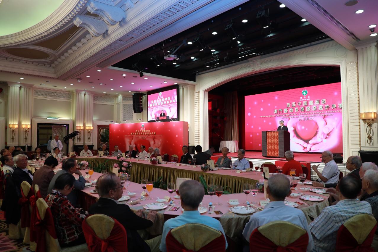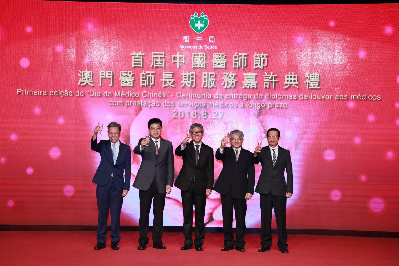 为响应“中国医师节”弘扬无私奉献的专业精神,嘉许及表扬长期投身医疗工作的全澳医生(包括已退休及离职的医生)。卫生局于今8月27日举行首届“中国医师节”澳门医师长期服务嘉许典礼,宴请服务超过30年或以上医师及颁授嘉许奖状。中央人民政府驻澳门特区联络办公室宣传文化部万速成部长、社会文化司司长办公室叶炳权主任、卫生局李展润局长、副局长及仁伯爵综合医院院长郭昌宇、副局长郑成业在典礼上举行了祝酒仪式并向服务超过30年或以上医师颁授嘉许奖状。出席是次典礼且服务澳门超过30年的医师有近400位,他们平均年资46年。当中,31位服务澳门医务界超过60年,最年长的今年已91岁,服务澳门71年。