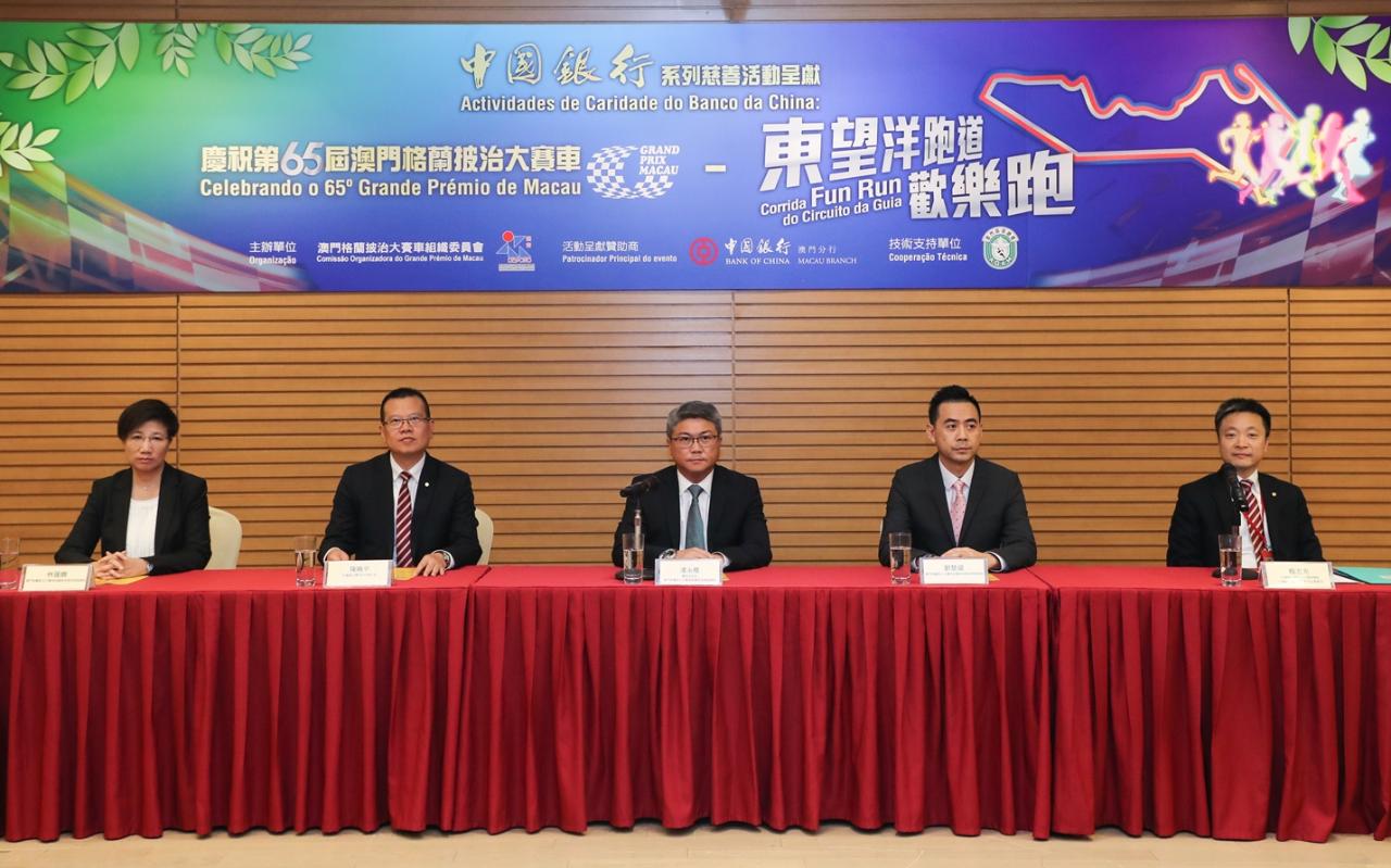 适逢今年澳门格兰披治大赛车举行至第65届,为庆祝赛事迈向新的里程碑,大赛车组委会举办了一系列的庆祝活动,以进一步增强澳门格兰披治大赛车与市民之间的联系,当中包括:中国银行系列慈善活动呈献 “庆祝第65届澳门格兰披治大赛车-东望洋跑道欢乐跑”。东望洋跑道是国际知名的赛道,举办活动的目的是为了让市民共同参与并亲身体验东望洋跑道的魅力,感受于东望洋跑道内奔驰及冲刺的新鲜感。是次由大赛车组委会主办、中银呈献赞助的东望洋跑道欢乐跑,将体育及慈善的元素相结合,通过公众参与和身体力行的方式来传承和弘扬澳门乐善好施、包容共济的优秀人文价值和优良传统,为社会带来欢乐,推动本地体育及慈善事业的发展。本年中国银行澳门分行还将向六间本地教育及体育机构、八间本地大专院校、以及四十一间本澳中小学,共计五十五个机构与社会服务团体进行专项活动赞助。