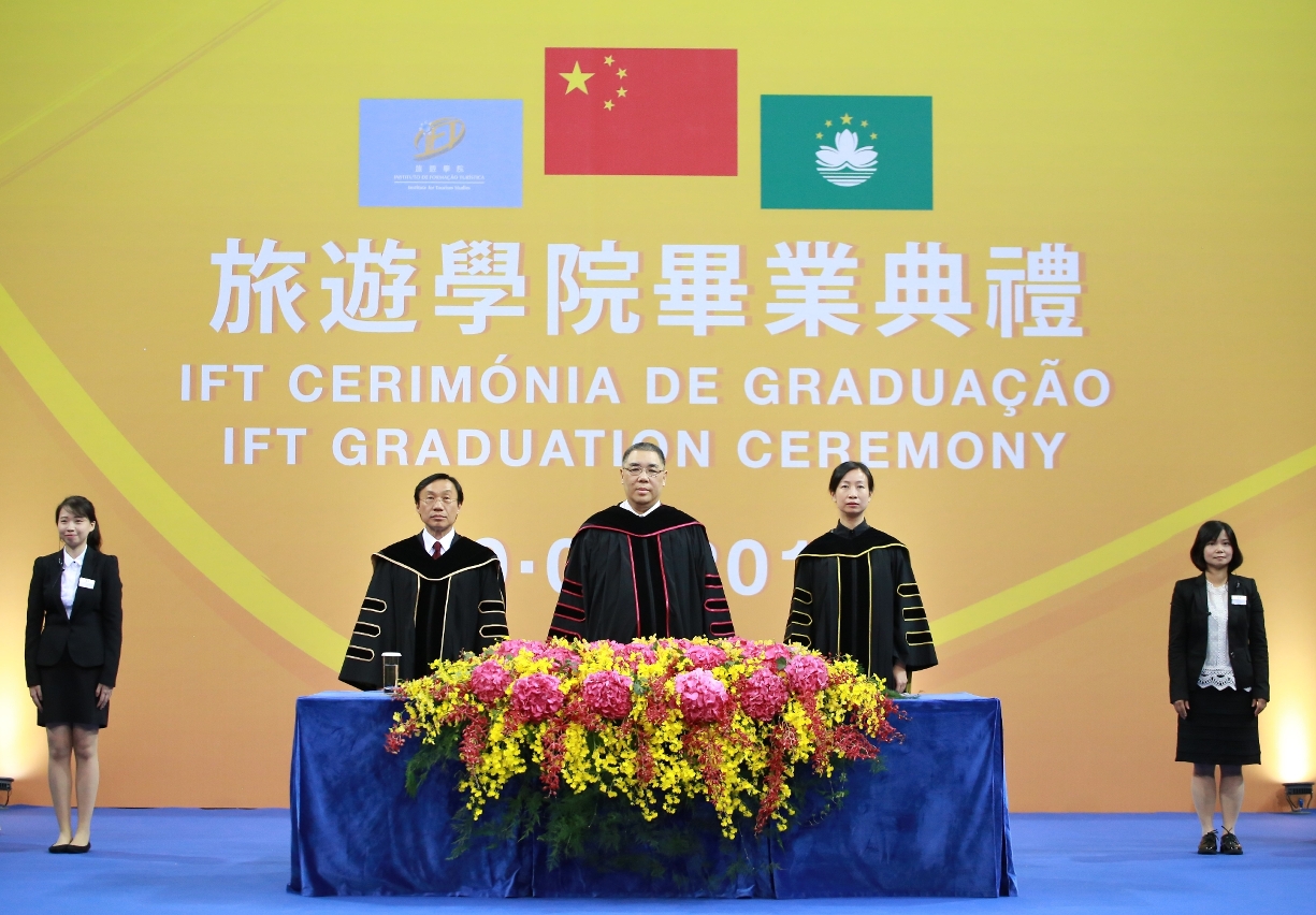 行政长官崔世安博士于毕业典礼上表示政府继续支持旅游学院充分发挥自身的办学优势,增强相关课程国际认证的实力;根据社会需要和学院条件开办新课程,为澳门加快建设“一中心、一平台”培育多元化的人才,为积极参与 “一带一路”和粤港澳大湾区建设,做好人才储备,为澳门打造旅游教育培训基地作出更大的努力。