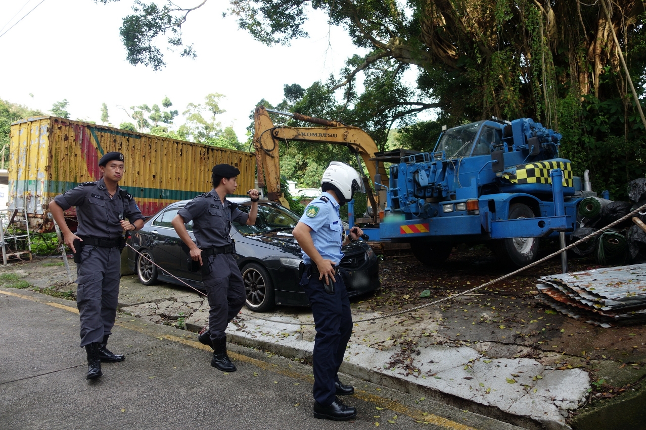 治安警特别巡逻组在监狱外围锁定可疑车辆,采取截查行动,拘捕车上两名可疑人物及在车内搜获2支手枪,其后治安警及狱警人员继续在监狱外围进行搜索;而海关亦加强各口岸、沿岸及海上巡逻,留意各靠岸黑点的情况。