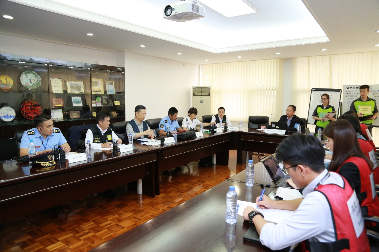 是次演练历时约两小时,总参与人数约310人,保安范畴动员多个部门的多支队伍,包括:海关人员,治安警察局特警队、特别行动组、特别巡逻组、警犬组,司法警察局危机谈判小组,消防局救护人员,以及惩教管理局监狱防暴队和社工等,同时,在与新闻局及卫生局的通力合作下,整个演练在讯息传递、资源调度及沟通协调等多方面都运作畅顺,达到预期行动方案的成效。