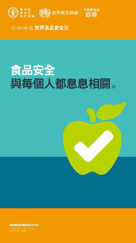 为吸引公众关注食品安全问题,联合国大会去年决议,宣布设立「世界食品安全日」,以宣扬安全食品的重要性,并鼓励各持份者采取行动,帮助预防、发现和管理食源性疾病的风险,以促进粮食安全、人类健康、经济繁荣和可持续发展。首个「世界食品安全日」的主题是「食品安全与每个人都息息相关」〈Food safety, everyone’s business〉,藉以提高国际社会对食品安全的总体认识,并强调食品体系中的每个人都能发挥重要作用。