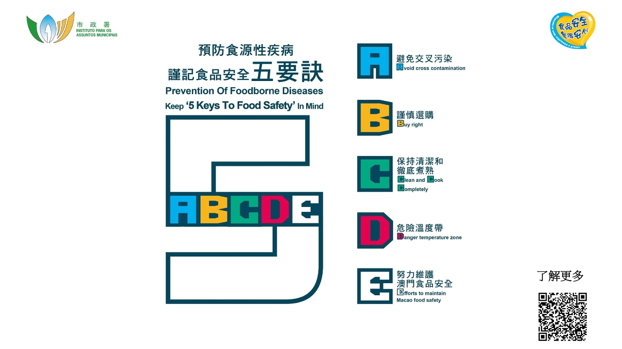 藉着世界食品安全日,市政署于食品安全资讯网站设置了专页https://www.foodsafety.gov.mo/c/fsevent/detail/8ae203c4-79b0-439c-8004-92f21a28c664,巿民透过专页,可以瞭解「世界食品安全日」的设立目的及主题意义等,同时学习「食品安全五要诀」(ABCDE)的详细内容,传递避免交叉污染(Avoid Cross Contamination)、谨慎选购(Buy Right)、保持清洁和彻底煮熟(Clean and Cook Completely)、危险温度带(Danger Temperature Zone)以及努力维护澳门食品安全(Efforts to maintain Macao food safety)等重要概念,并设多语文版本,透过宣导单张以及动画短片等,让公众轻松学习、掌握食安控制要点,灵活地应用于日常生活、生产中,提升食安意识及食安管理成效,降低食品安全的风险。