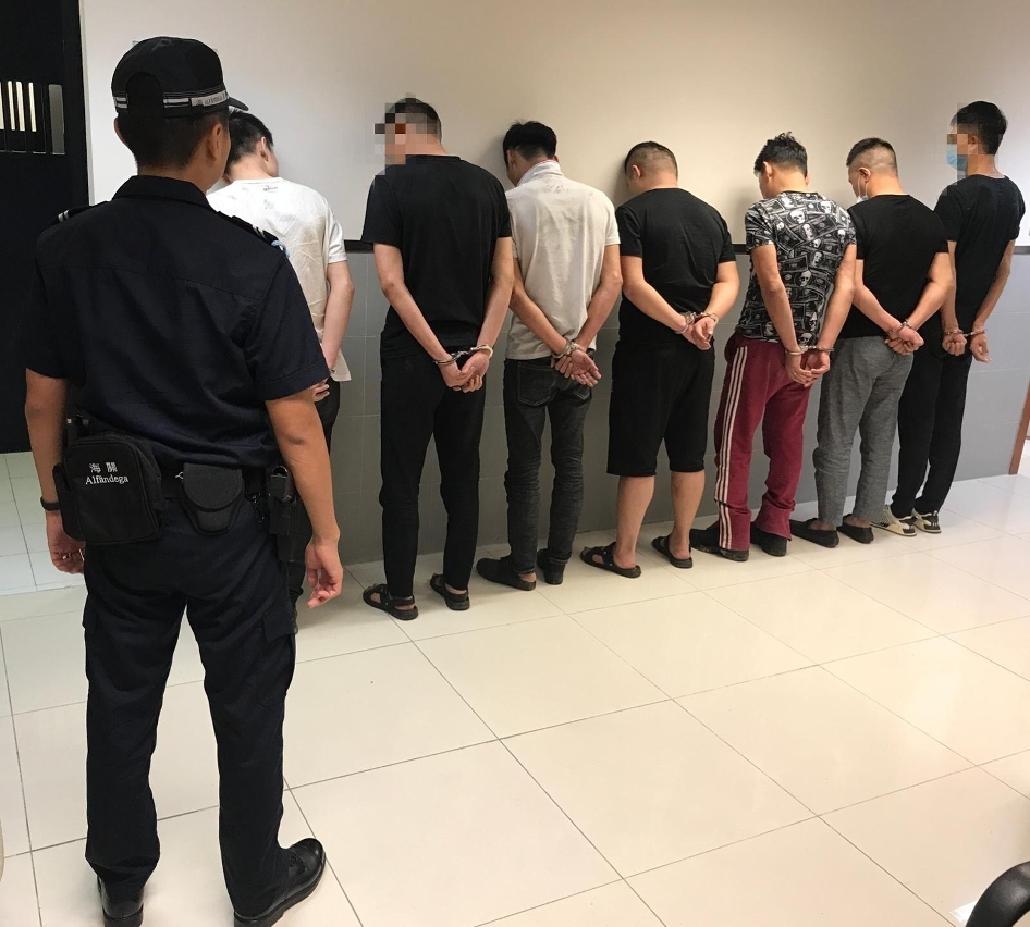 被捕的9人包括8男1女,均来自内地,年龄介乎26至49岁。调查过程中,关员在其中一名男子身上搜出多张伪造入境申报表,该名男子涉嫌触犯第6/2004号法律第18条『伪造文件』罪;另,案中一名女子亦涉嫌触犯同一法律第21条『非法再入境』罪,二人已被移送检察院侦办,其余七名非法入境者则移交治安警察局处理。