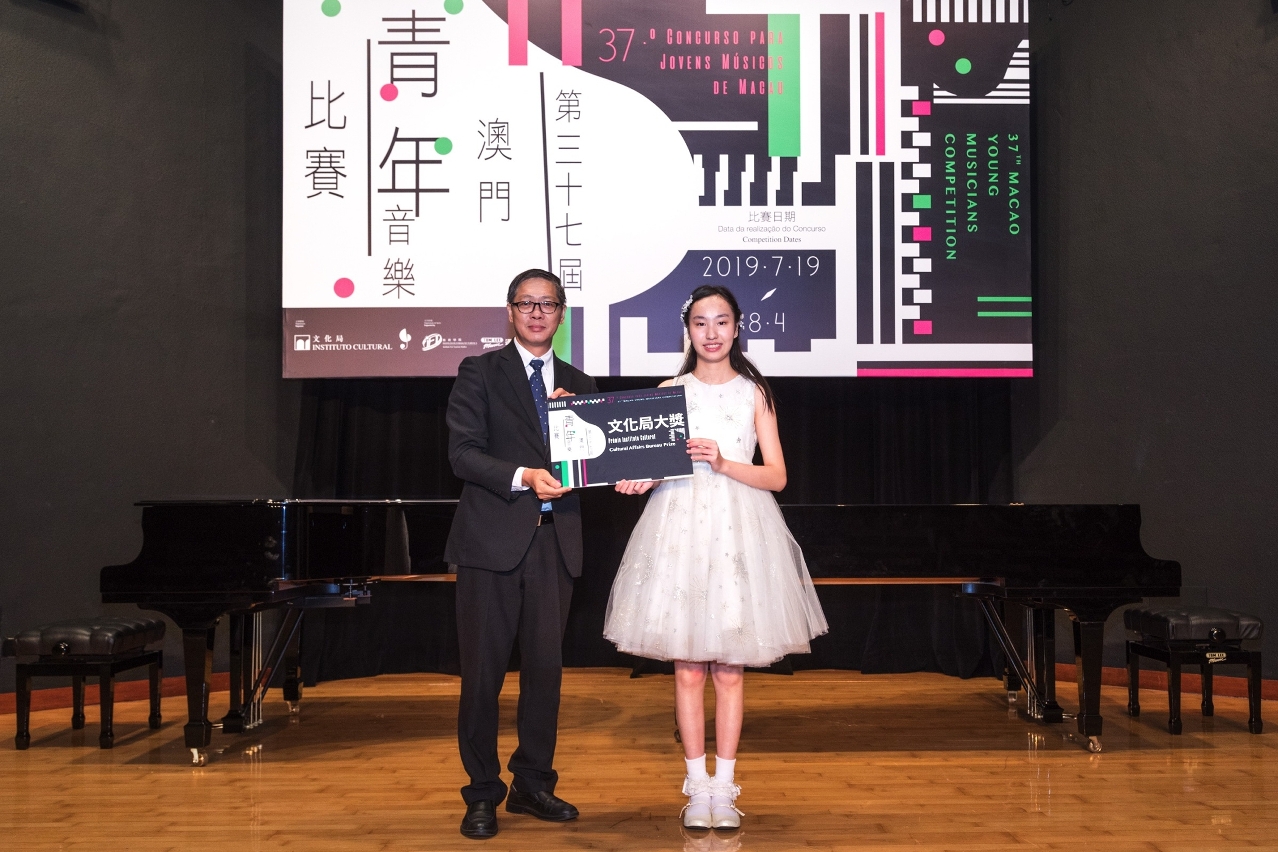 文化局“第三十七届澳门青年音乐比赛”已于7月19日至8月1日顺利举行,期间进行了17个比赛项目共24场分组赛赛事,并于日前(8月4日)举行了特别大奖赛,最终何芷莹凭完整及细腻的演绎获“文化局大奬”,同场亦揭晓各项特别大奬得主。文化局副局长陈继春、演艺发展厅代厅长黄颕缇、演艺活动处代处长余永鸿,评审郭嘉特、梁以信及范姜毅出席进行颁奖。