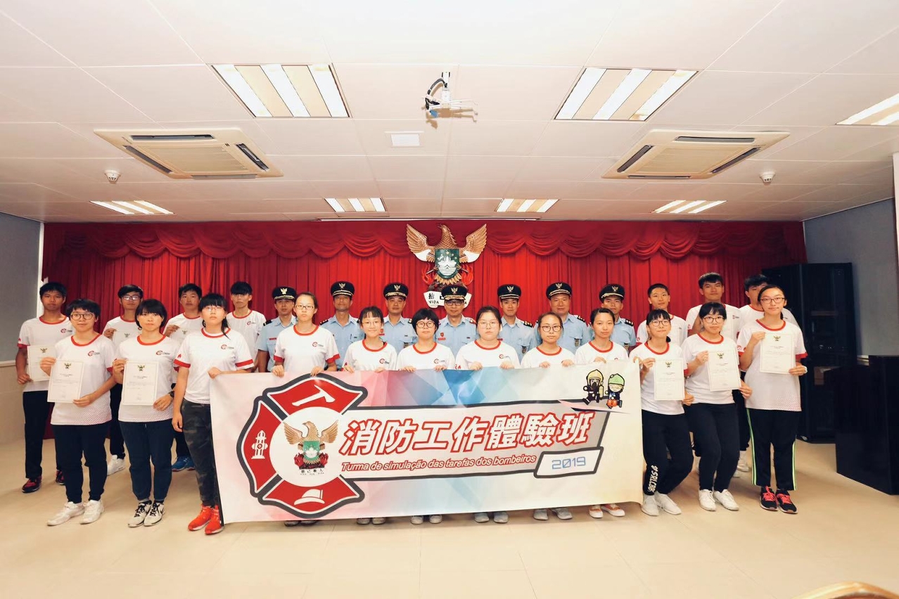 消防局配合特区政府的青年培育政策,使青少年珍惜年华,善用暑假,加强青少年的公民意识及服务社会的精神,与教育暨青年局合办“2019消防工作体验班”,于8月8日在黑沙环消防学校举行“2019消防工作体验班”第一班结业仪式,合共19名学员完成体验班并获颁发证书。