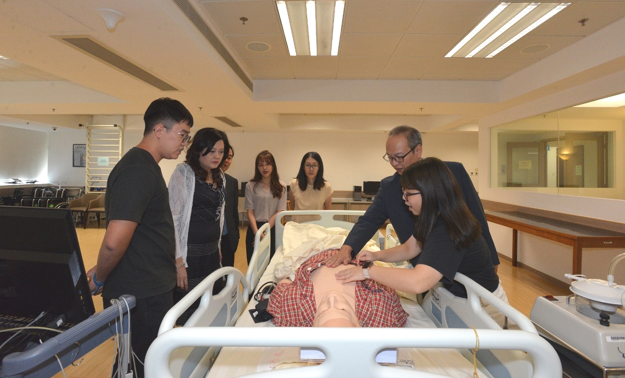 苏局长一行在澳门镜湖护理学院学生会陈旭明主席、麦静仪理事长、梁慧仪监事长的陪同下,参观望厦校址的护理实验室,包括成人护理实验室、老人及康复护理实验室、母婴及儿童青少年护理实验室、中医护理实验室。学生详细介绍各间护理实验室的教学设备,展示使用各类模型及医疗器械用品。随后,参观学生会办公室,瞭解学生会日常运作情况。