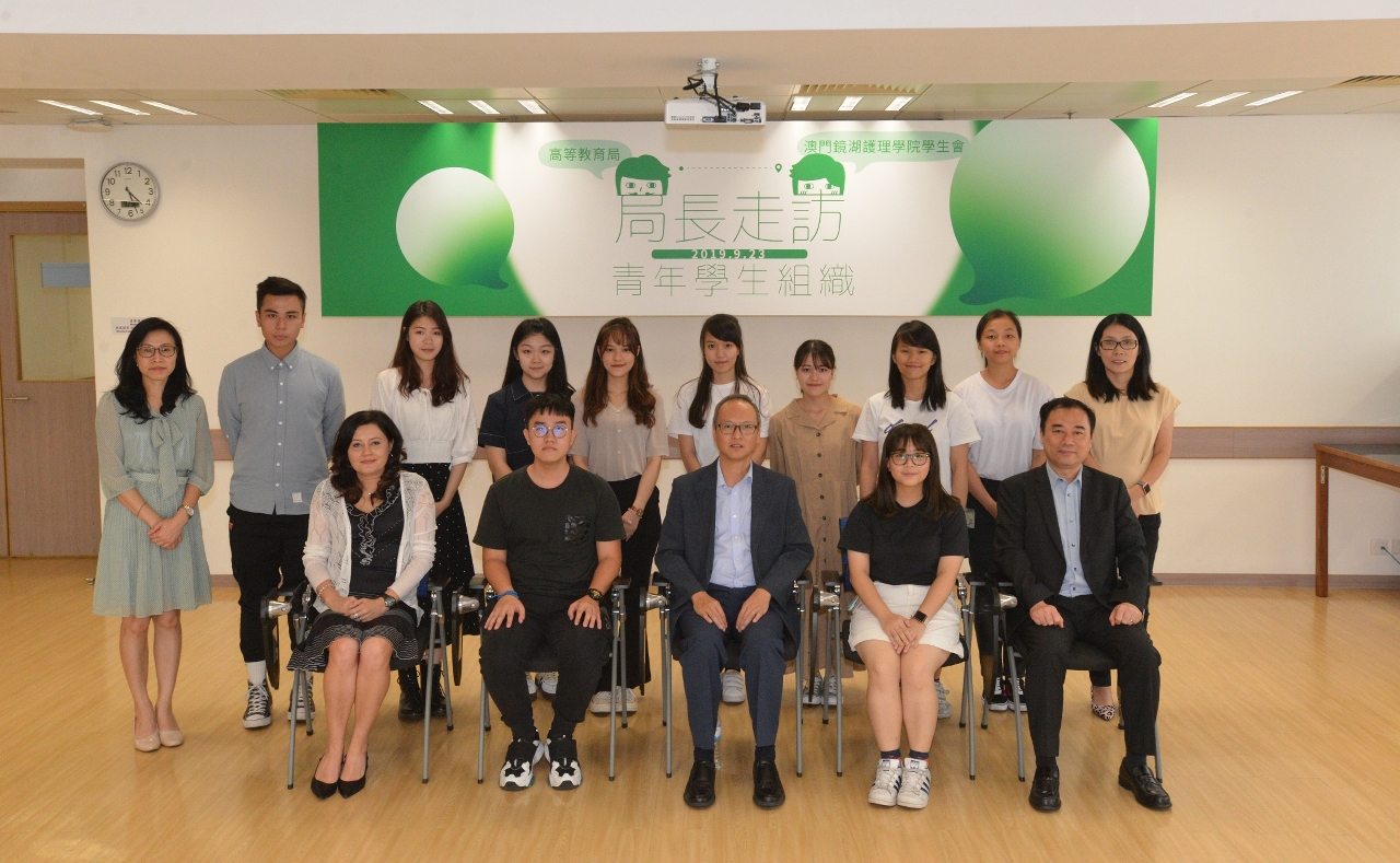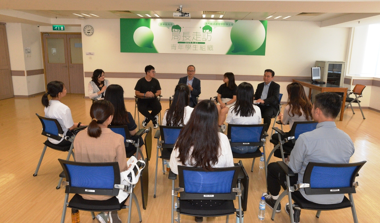 高等教育局苏朝晖局长日前走访澳门镜湖护理学院,与学生会骨干成员举行座谈,表达特区政府对大专学生的关怀,瞭解学生的学习和生活情况,勉励学生珍惜大学时光,享受学习生活,增加知识储备。