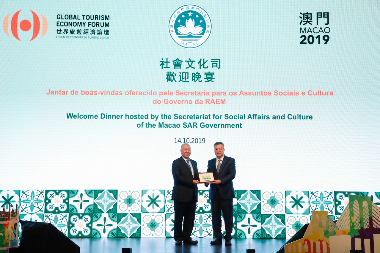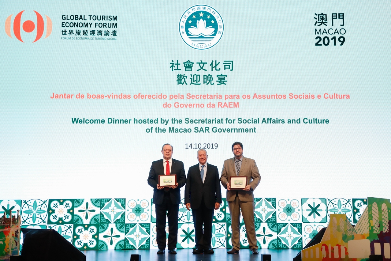 澳门特别行政区政府社会文化司司长、世界旅游经济论坛执行主席谭俊荣致欢迎辞时表示,今年庆祝中华人民共和国成立70周年以及澳门特别行政区成立20周年,在中央政府的大力支持下,澳门特区旅游业发展蓬勃,成为一个拥有多张亮丽名片的旅游城市,包括:世界遗产“澳门历史城区”、“联合国教科文组织──创意城市美食之都”,以及盛事活动之城等。
