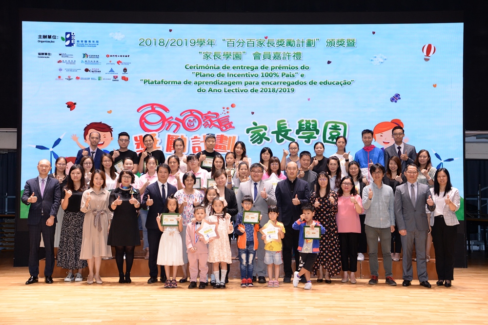 为表扬过去一年来热心及积极参与家长教育及亲子活动的家长,教青局于10月20日上午10时30分在中葡职业技术学校礼堂举行2018/2019学年“百分百家长奖励计划”颁奖暨“家长学园”会员嘉许礼,并举行2019/2020学年“百分百家长奖励计划”启动仪式。出席嘉宾包括教青局代局长梁慧琪、教育厅厅长江毅、邮电局通讯博物馆总馆长黄锦欣、澳门科学馆教育及展品总监梁思聪,以及60多位来自教育机构及社团的代表。