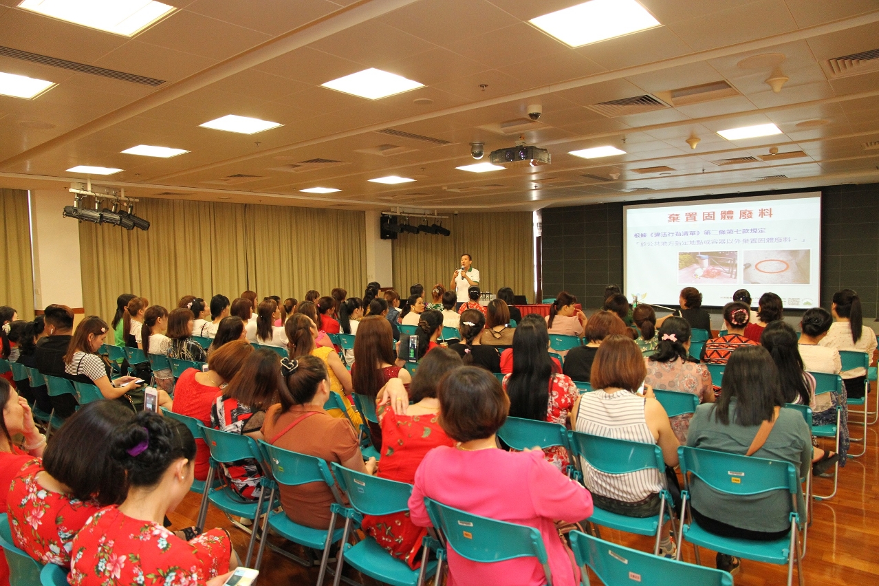 清洁运动期间,市政署与俾度莉关注印尼移工组织、基逊(菲律宾)同乡联谊会,以及澳门越南同乡联谊会等居澳外籍团体,进行多场「社区清洁活动」,包括:组织会员学习有关本澳环境卫生的专题讲座、于周六及周日前往澳门旧区及离岛旅游区进行清洁活动、于较多外籍人士聚集的地区进行宣导工作等,藉以加强不同族群人士认识本澳环境卫生的知识,共同维护环境清洁卫生并自觉遵守相关法规。此外,市政署于十月十八日联同澳门妇女联合总会举办座谈会,会上市政署代表介绍了本澳的环境卫生管理工作,公共垃圾收集设施的优化历程、挑战及困难,以及智慧化管理等,并与团体代表及市民交流意见。