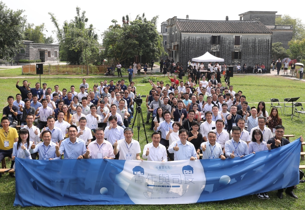 为配合特区政府的施政内容,积极促进政府官员与青年之间的沟通,并让青年更深入地感受大湾区深厚的文化底蕴,了解澳门、江门两地文化遗产特色,增进两地青年的交流和学习,由教育暨青年局与澳门江门青年会合办的“青年与社会文化司谭俊荣司长真情对话”活动于2019年10月26日(星期六)举行。是次活动以别开生面、生动活泼的形式进行,由谭俊荣司长率团,带领澳门青年走进湾区,前往广东省开平市参访交流,约200人参与活动。