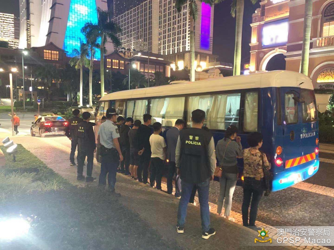 在警察总局统筹下,治安警察局展开「雷霆2019」行动,确保本澳社会安宁及公共秩序安全。于11月7日至8日凌晨,治安警察局海岛警务厅、情报厅及特警队警犬组共派出20名人员,分别于路氹金光大道一带截查可疑人士,以及于本澳各区巡查多间卡拉OK及酒吧,打击各种不法行为。
