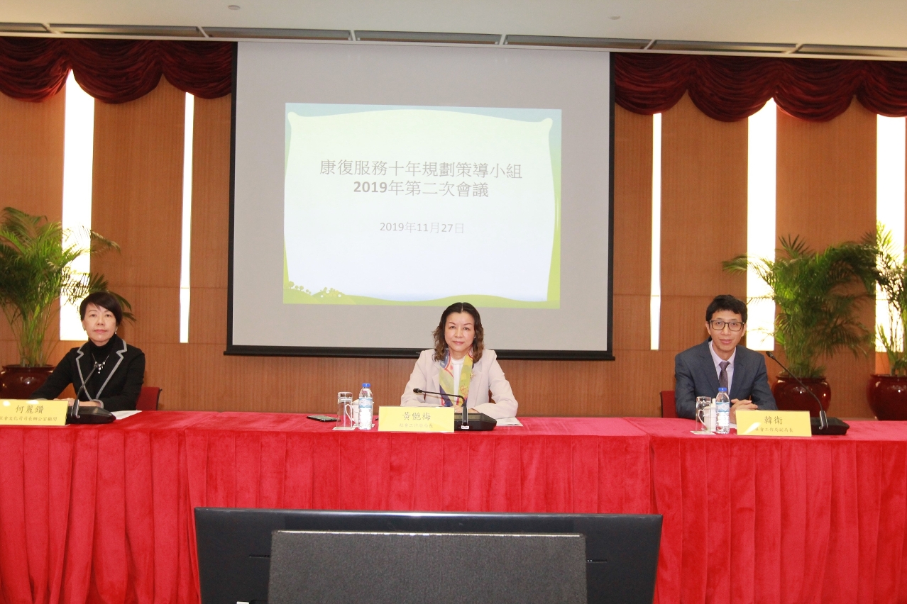 康复服务十年规划跨部门策导小组(下称「策导小组」)今(27)日在政府总部多功能厅举行本年度第二次全体会议,由策导小组代组长、社会工作局黄艳梅局长主持。
