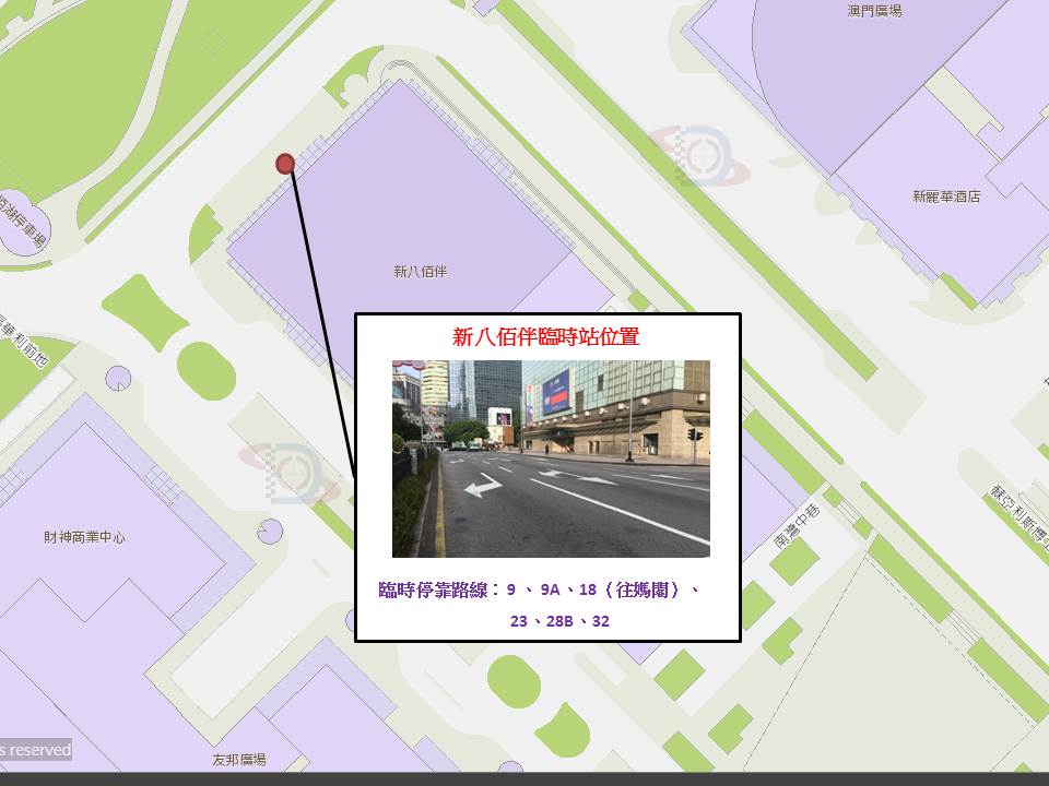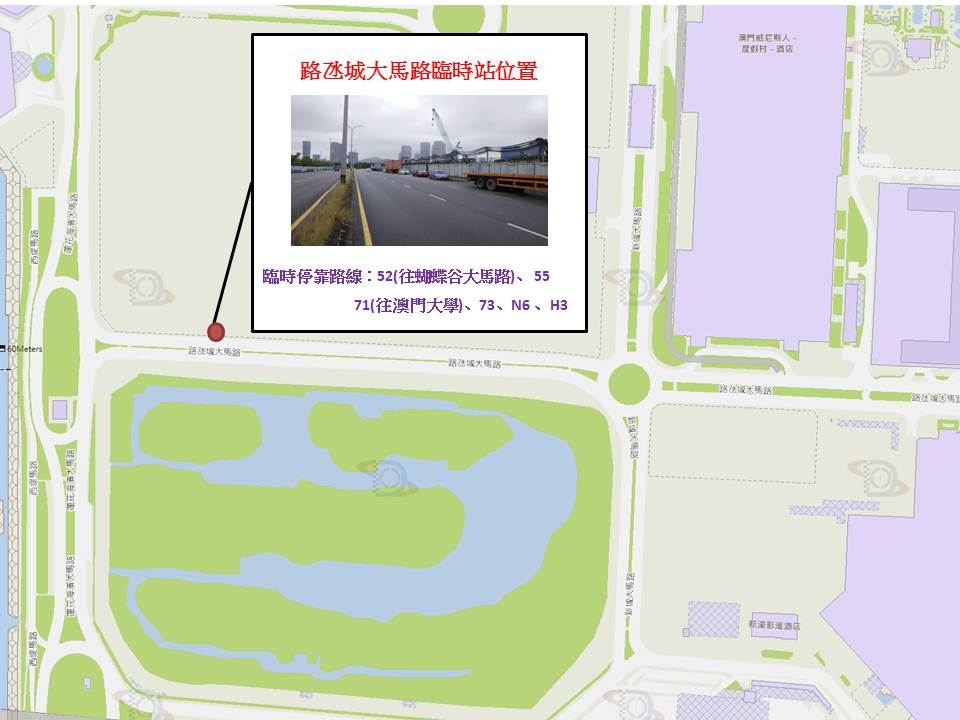 另外,51条巴士路线于12月1日(周日)清晨4时起改道行驶,部份站点受影响,直至活动结束。两条大桥于交通管制期间,26、55、MT4、N2及N3路线,往澳门方向时改行友谊大桥;而11、21A、22、25、25AX、25B、26A、28A、33、39、50、50B、52、71、73、102X、H3、MT1、MT2及N5路线,往氹仔方向改行西湾大桥,往澳门方向则改行友谊大桥。详情请参阅附表,交通事务局呼吁公众留意 。