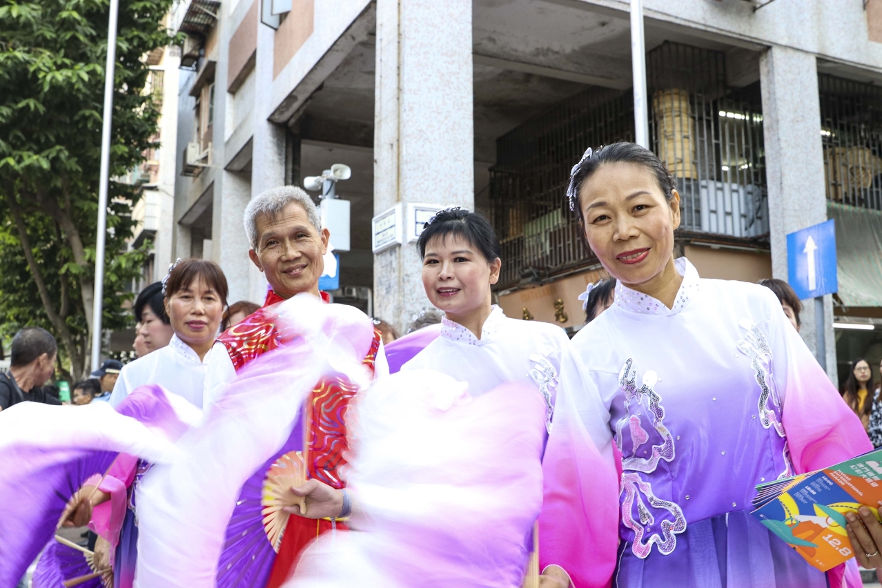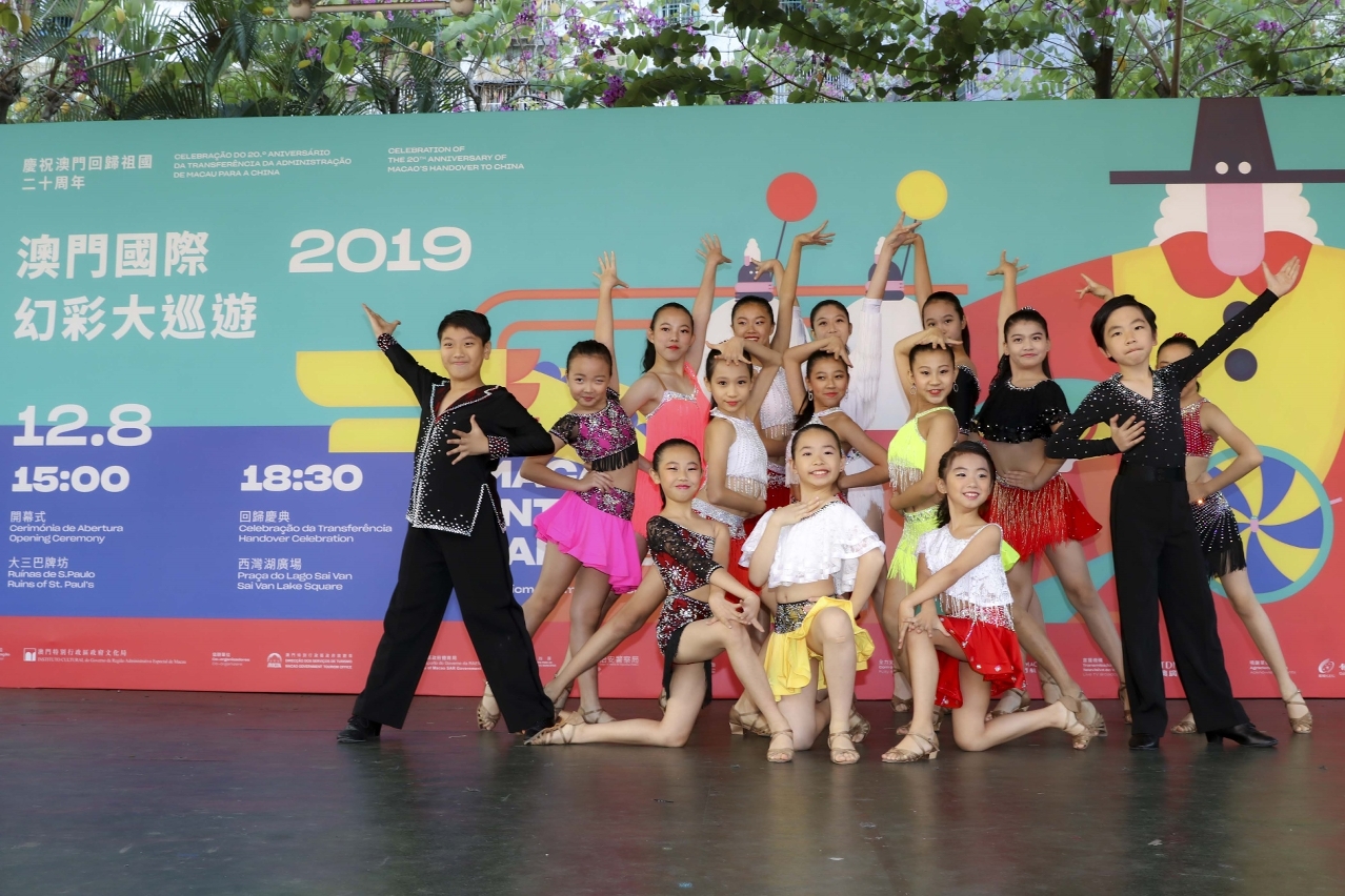 由文化局举办的庆祝澳门回归祖国二十周年“2019澳门国际幻彩大巡游”将于12月8日盛大举行。为了率先让大家感受节庆氛围,预热年度庆典,各个大巡游参与队伍自11月18日起已开始走进社区,与巿民及游客近距离互动交流。