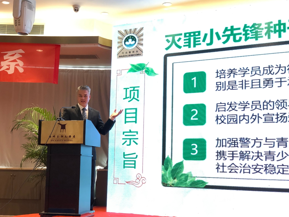 澳门保安司派出代表团出席11月23日至25日在浙江省温州市举办的第四届“警察公共关系最佳案例研讨会”,司法警察局社区警务及公共关系处处长郑宝湘率该处多名人员随团。研讨会上,司警局“灭罪小先锋种子计划”案例获评为全场最高荣誉的特别优秀奖。