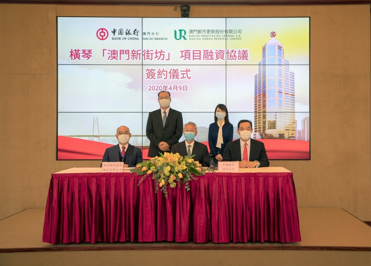 会上亦同时举行中国银行澳门分行与澳门都市更新股份有限公司的横琴「澳门新街坊」项目融资协议签署仪式,在澳门都市更新股份有限公司股东会主席何燕梅和中国银行澳门分行行长李光的见证下,中国银行澳门分行副行长蔡春彦与都更公司董事会主席林金城、副主席刘永诚签署融资协议。