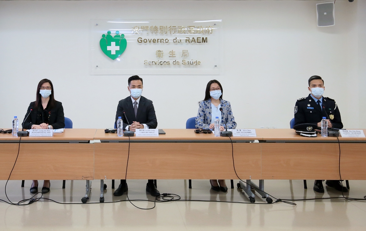 新型冠状病毒感染应变协调中心(下称应变协调中心)于今(13)日举行例行记者会,仁伯爵综合医院罗奕龙医务主任、旅游局执照及监察厅陈露厅长、治安警察局行动及通讯处马超雄处长、疾病预防控制中心传染病防制暨疾病监测部梁亦好协调员共同会见传媒。