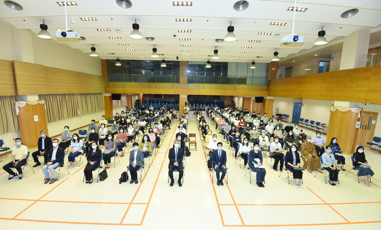 由社会工作局主办「社会服务人员全国 “两会”精神分享会」于6月24日下午假镜湖医院礼堂举行,约 150名社会服务人员听取全国“两会”精神,深入瞭解国家的发展情况。