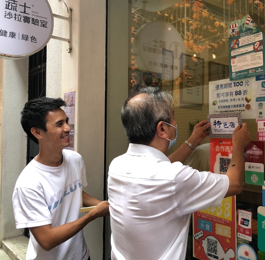 他指出,“特色店计划”结合“扩客源.兴经济.保就业”计划,加强了线上线下宣传,相信有助吸引旅客来澳,走进特色店及周边消费,带动社区经济。随着逐步恢复内地旅客自由行签注及国庆黄金周假期,相信将为特色店及社区经济注入新的活力,对前景抱有信心。