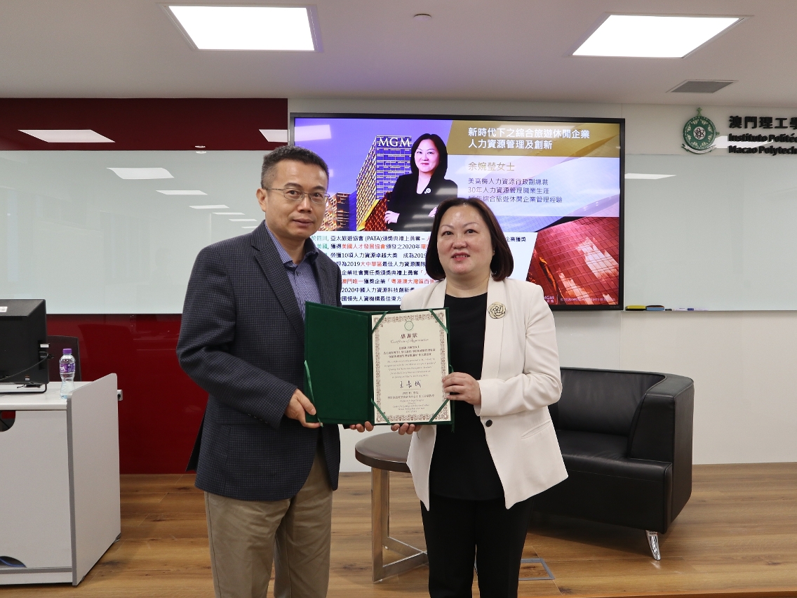 澳门理工学院博彩旅游教学及研究中心于日前举行了一场“综合旅游休闲企业人力资源管理及创新”的精彩讲座,由美高梅人力资源行政副总裁余婉莹女士为演讲嘉宾。博彩与娱乐管理学士、硕士学位课程学生,以及教职员工六十多人出席了讲座,获益良多。