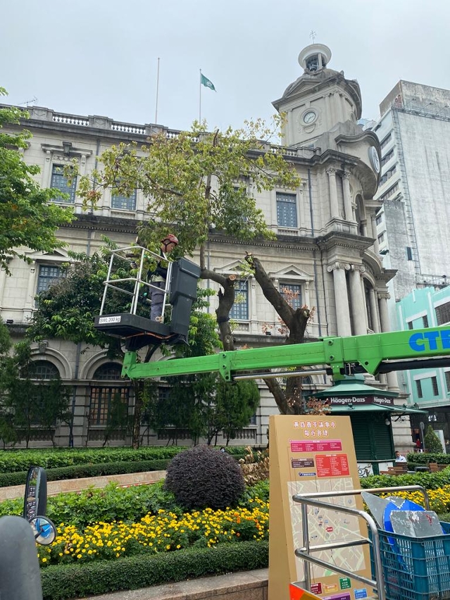 考虑到议事亭前地人流较多,敬请市民体谅配合,切勿进入工作范围,避免发生意外。市政署将持续巡查本澳街道树木,维护树木健康及公众安全。