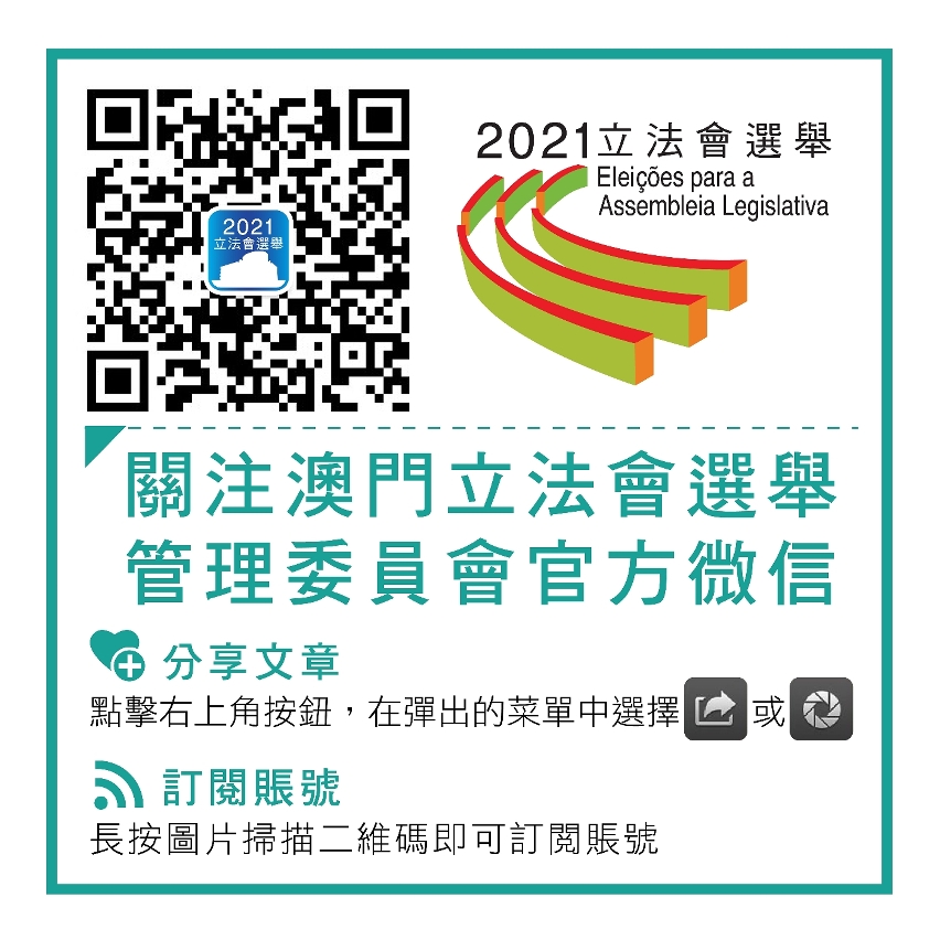 除微信订阅帐号外,选管会已设有专属网站( www.eal.gov.mo ),提供最新及详尽的信息,网页内也附有微信订阅帐号的二维码,方便公众扫描及订阅。