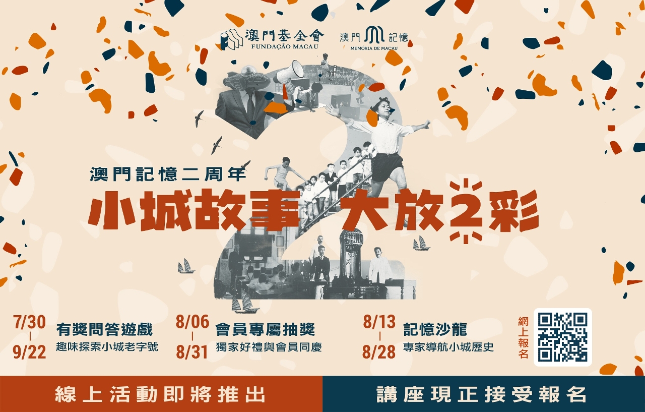 为感谢读者一直以来的支持及参与,“澳门记忆”藉开站两周年之际推出系列活动,读者可于活动期间透过“澳门记忆”Facebook专页、微信订阅号或Instagram (ID:MacauMemoryFM) 了解详情及掌握最新动态;如有查询,亦可于办公时间内致电8797 8500或电邮至macaumemory@fm.org.mo。