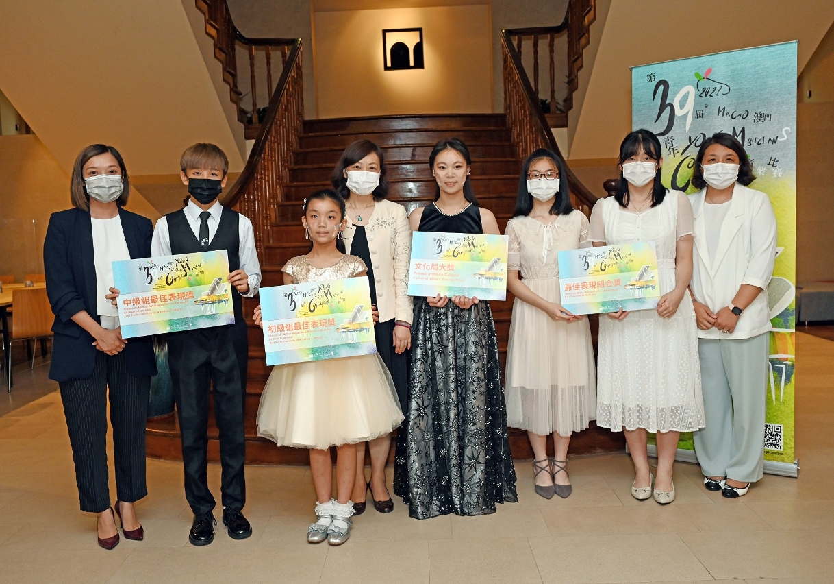 文化局“第三十九届澳门青年音乐比赛”日前进行了颁奖仪式,向四项特别大奬得主颁发奖项,本届《文化局大奬》由蔡朗珵获得。文化局局长穆欣欣、演艺发展厅厅长余慧敏及演艺活动处处长曹伟妍出席进行颁奖,比赛圆满结束。