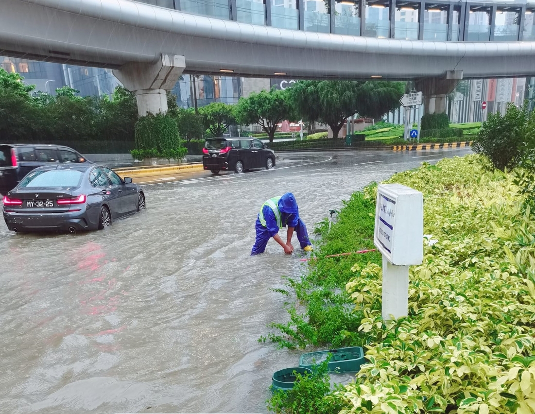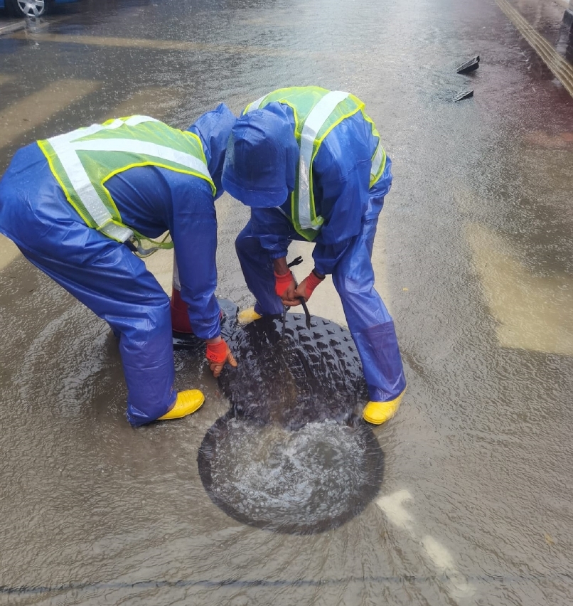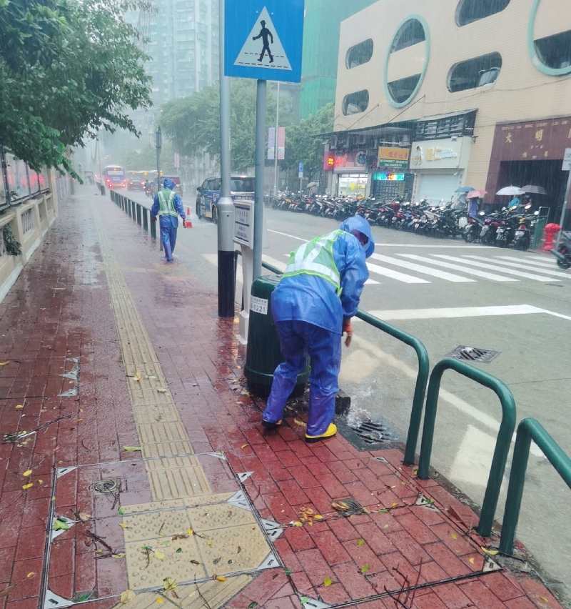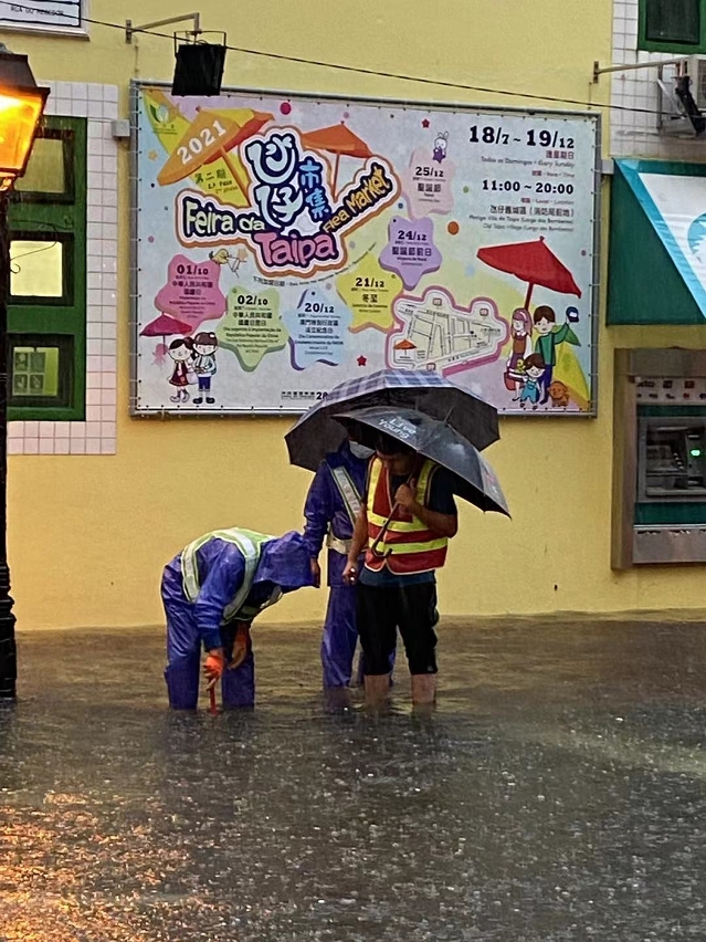 市政署启动暴雨紧急应变小组机制,派员到各水浸黑点清理路边雨水井冲积的垃圾,并在安全情况下打开渠盖,加快下水道排洪能力。