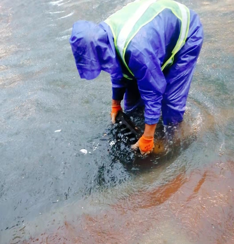 打开渠盖加快排走积水