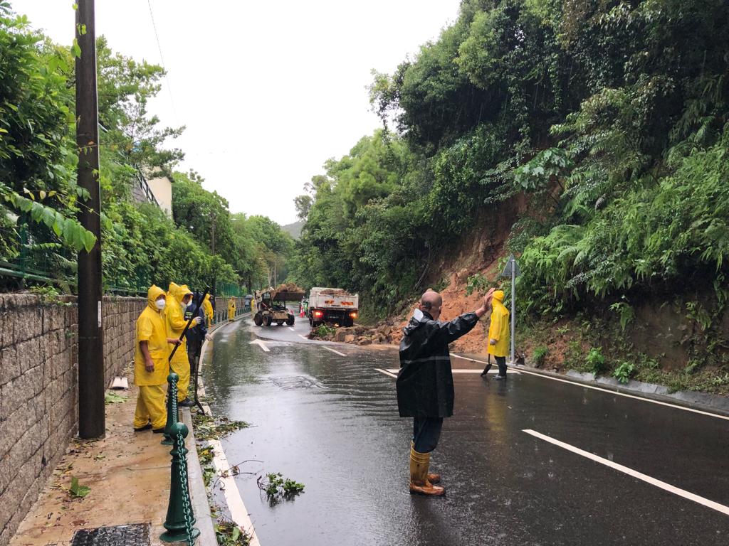 热带风暴「狮子山」影响本澳期间,气象局先后发出黄色及红色暴雨警告,当中红色暴雨警告,持续时间逾七小时。暴雨持续冲刷山体,让路环多处地点发生山泥倾泻,有部分范围甚至占据整条行车路面。市政署随即派员进行清理工作,除以人手外亦出动重型机械对大面积的山泥进行清理,经人员连夜工作,目前除路环乡村马路仍维持封闭外、黑沙马路、竹湾马路及鸡颈马路等多段马路经已基本开通或有限道通车,相关路边近斜坡位置亦已围封并加闪灯,提醒驾驶者留意。