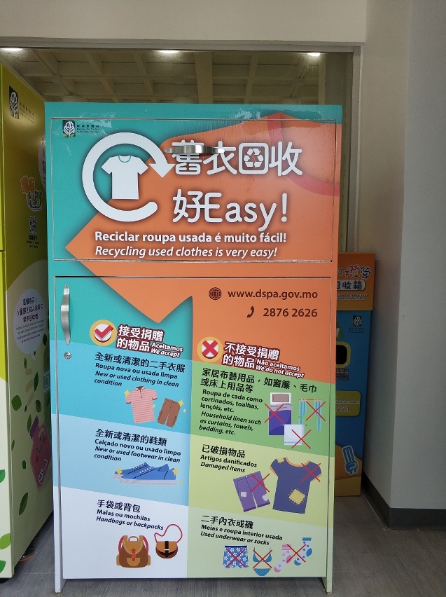 上述详情可浏览环保局网页(www.dspa.gov.mo/recyclingclothes.aspx)或致电“环保热线”(2876 2626)查询。