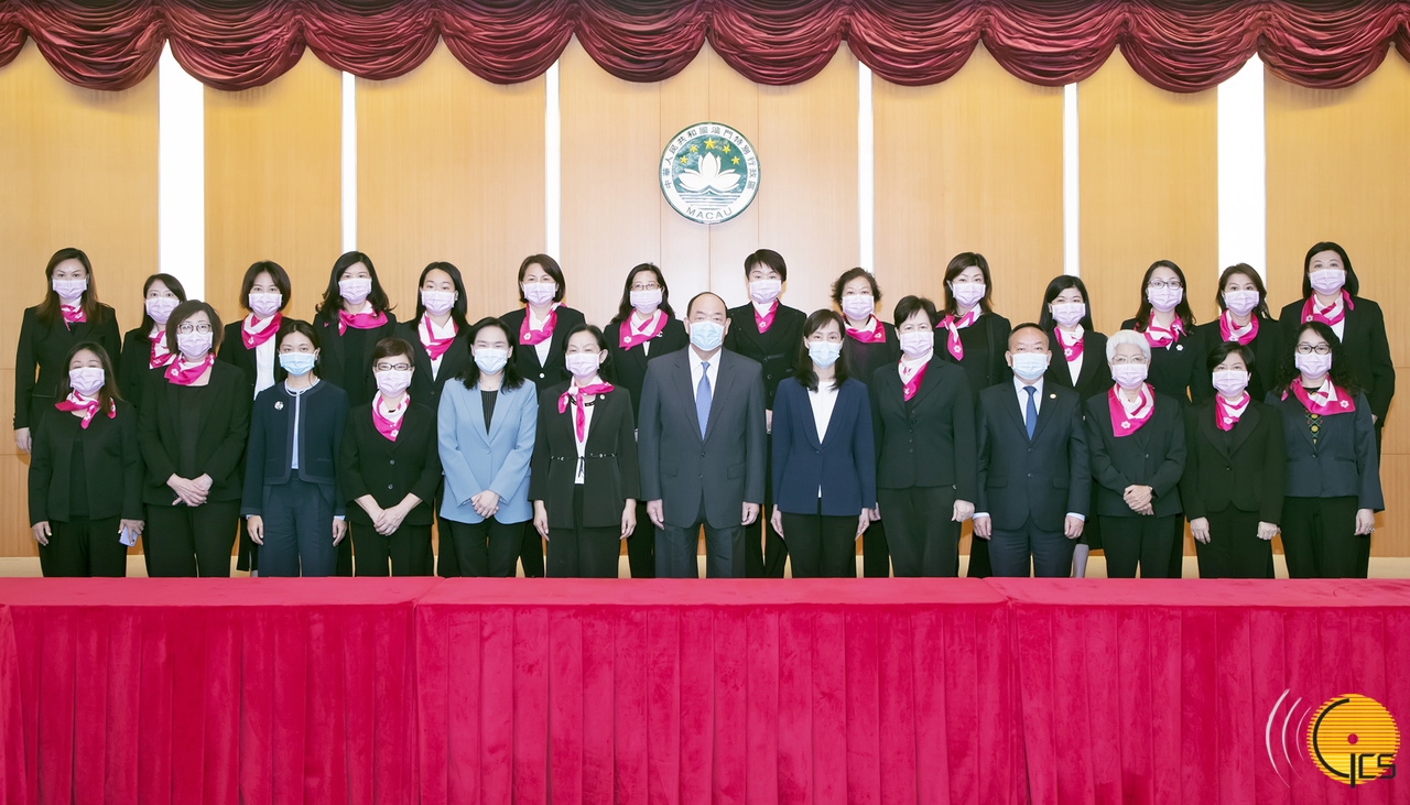 行政长官贺一诚今(18)日在政府总部会见澳门妇女联合总会副会长容永恩等领导层一行,就特区政府制定《2022年财政年度施政报告》听取意见及建议,并就防疫措施、社区服务等方面交流意见。