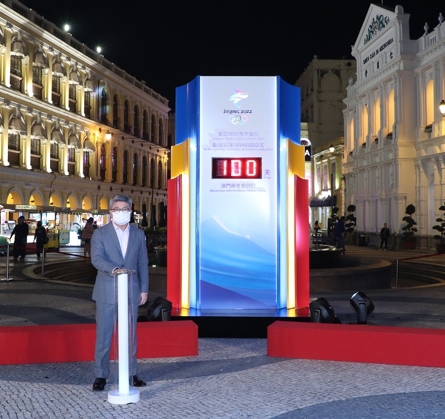 随着北京2022年冬奥会盛事日渐逼近,冬奥气氛渐趋浓厚。为了将冬奥会的气氛传播至澳门每个角落,体育局喜获「北京2022年冬奥会和冬残奥会组织委员会」授权和支持,在澳门设置「迎冬奥倒数100天」倒计时器,并将有关倒计时器设置于人流较畅旺、旅游活动景点之一议事亭前地,与市民及旅客迎接冬季奥运会的到来,共同感受北京冬奥会的气氛。