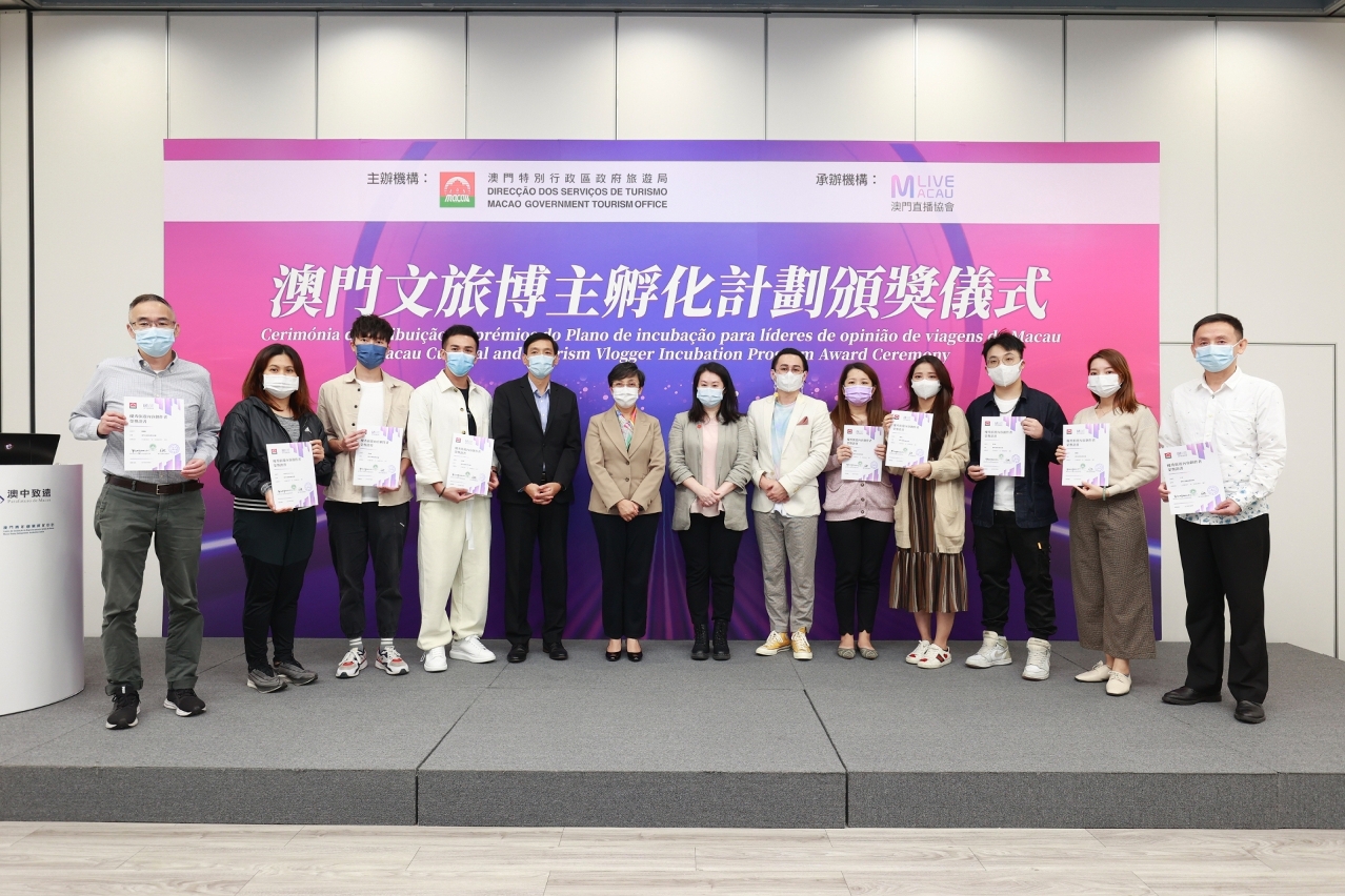 由旅游局主办、澳门直播协会承办的“澳门文旅博主孵化计划”选出10名“优秀旅游内容创作者”学员,颁奖仪式今(8日)假澳门青年创业孵化中心举行。