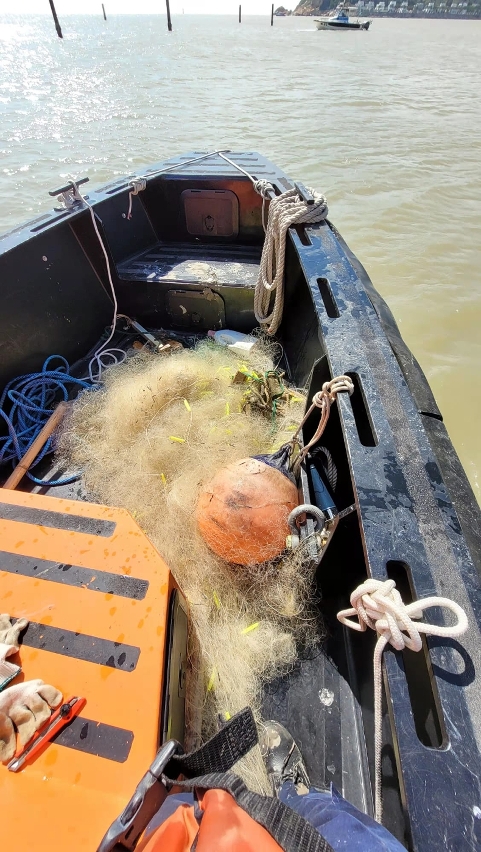 海事及水务局今(9)日派船在黑沙海滩附近海面清理违规渔具,共打捞约150米渔网,保障海事安全。