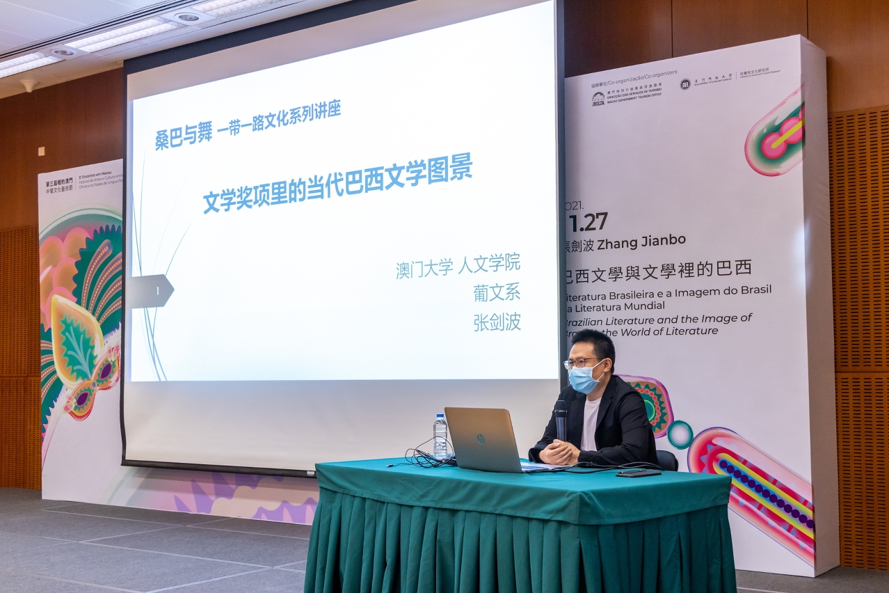 由文化局主办、澳门科技大学社会和文化研究所协办的“桑巴与舞── 一带一路文化系列讲座”第二场于日前(11月27日)在澳门文化中心会议室举行,由澳门大学人文学院葡文系助理教授张剑波主讲“巴西文学与文学里的巴西”,与市民概览当代巴西文学图景及其细微流变。讲座为第三届“相约澳门──中葡文化艺术节”系列活动之一。