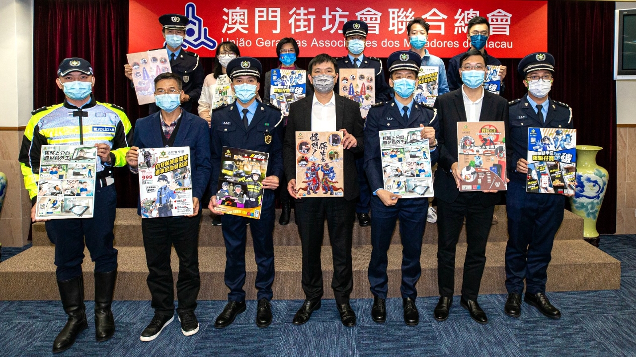 治安警察局代表感谢各「社区警务联络机制」成员对治安警察局的工作给予肯定和支持,营造良好的社区治安环境有赖各联络机制成员的协调和配合,联络机制是促进警民关系的一座坚实桥梁,亦是缔造良好社区治安环境的强力后盾;总结过去一年总体治安情况,严重犯罪案件继续保持低案发率,整体治安情况仍然良好;未来将继续在民防、抗疫、预防及打击犯罪等多方面与联络机制成员加强合作和紧密联系。现已开展的冬防工作,治安警察局将从社区宣传及警务行动两个层面进行,并遵从警察总局统筹之冬防行动计划,执行各类反罪恶巡查行动,同时因应各区治安状况采取相应警务部署。随后,策划行动厅公共关系处、澳门警务厅及交通厅各主管分别作工作总结汇报,并就各社团代表的问题逐一回应,以及作记录跟进。在会议结束后,治安警察局与其中多个社团代表一同落区进行防罪宣传,沿途向市民、商户及大厦管理人员派发防罪宣传单张及宣传防罪防骗资讯。