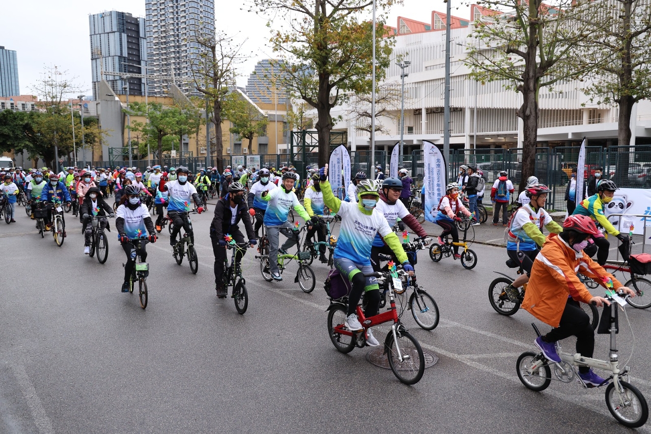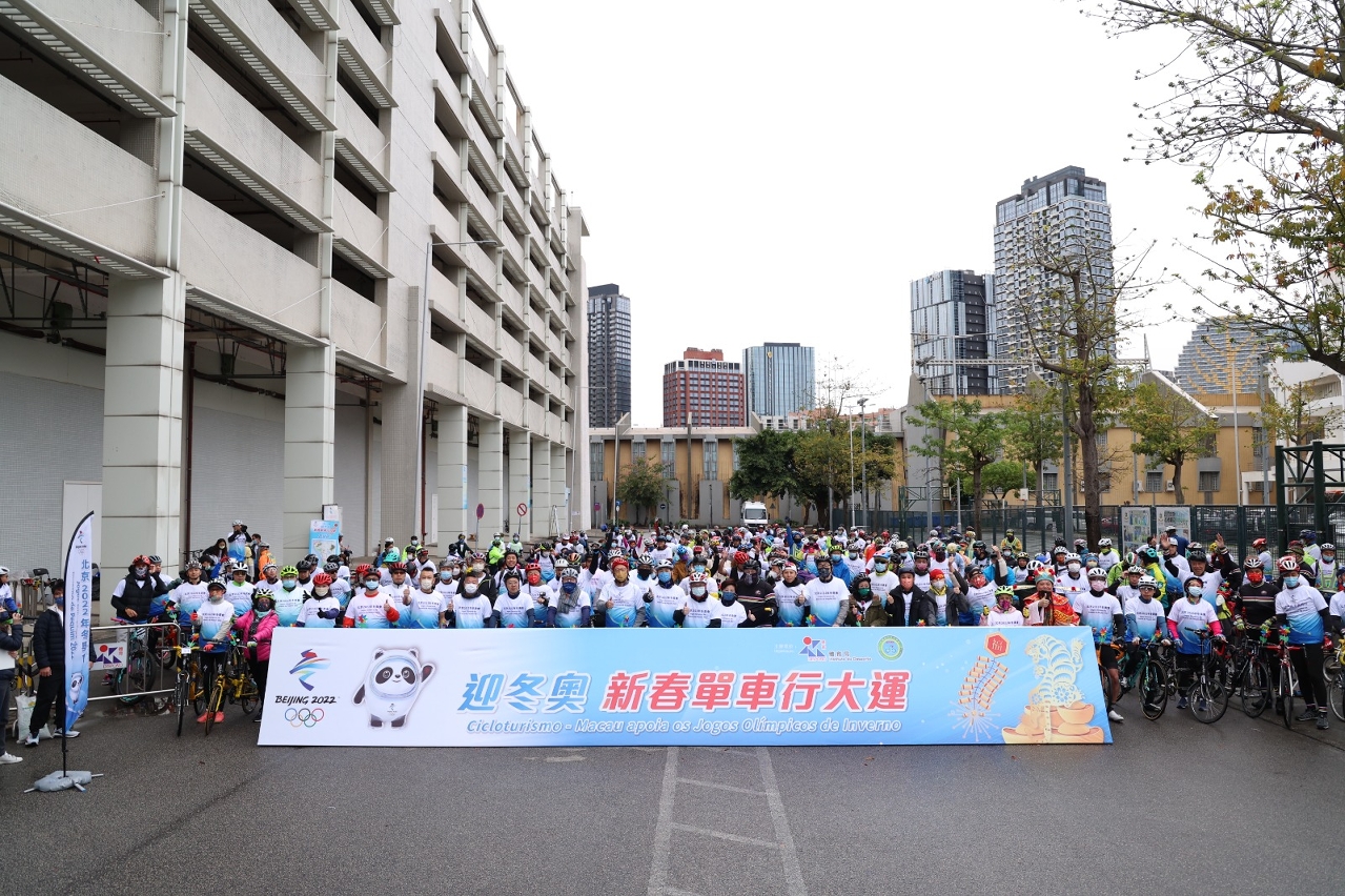 “迎冬奥 新春单车行大运”由体育局与中国澳门单车总会共同主办,于2月3日 (周四)上午举行,活动吸引约250名市民参与,场面热闹。上午9时许,参加者穿着整齐划一的冬季奥运会纪念T恤,浩浩荡荡于奥林匹克体育中心三人篮球场侧空地出发,车队途经氹仔区和路环一带,最后于终点站氹仔海滨休憩区结束全程约18公里的旅程。