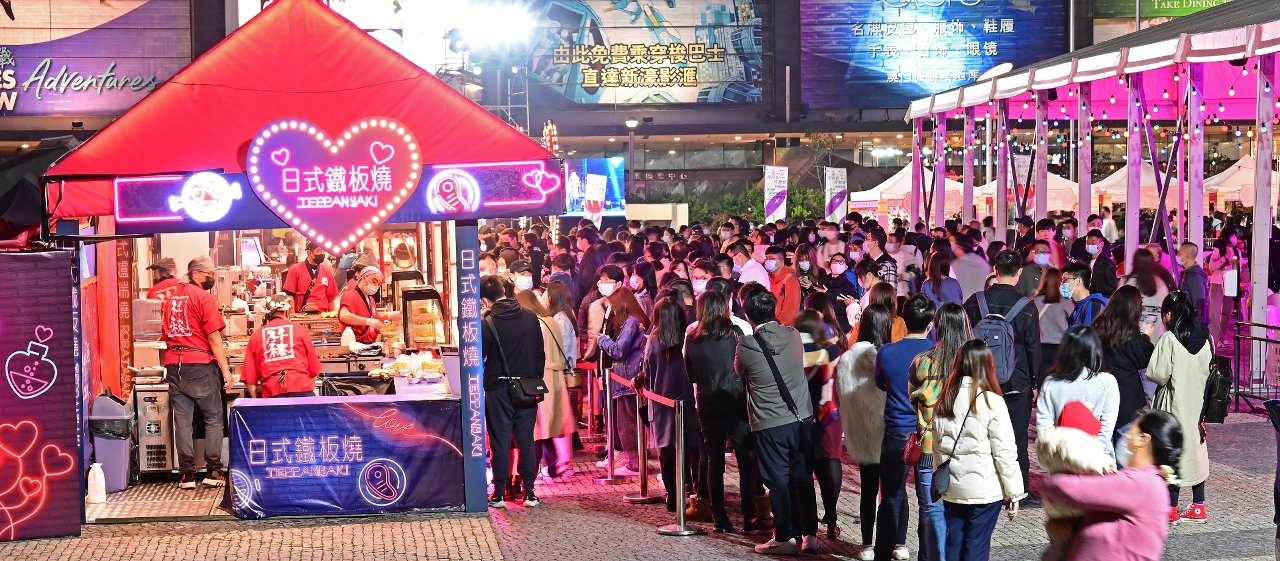 除舞台演出外,活动亦以多重创意元素增添活动体验。现场以爱情为主题装饰布置,吸引市民温馨留影;澳门餐饮业联合商会带来多款创意的餐饮美食,更在元宵节当日呈献应节食品,让到场观众倍感甜情蜜意;现场设有工作坊及互动摊位游戏,以文化创意贯穿盛事,不少市民携同伴侣及小朋友踊跃参与,工作坊连日来吸引逾500多人次参与。文化局感谢体育局对是次活动的支持,带来 2022 年北京冬季奥运会的吉祥物“冰墩墩”,每天吸引大批市民到场参与“冰墩墩”抽奖。场内以冰壶运动为主题的游戏亦深受观众欢迎,让市民感受冬奥魅力。