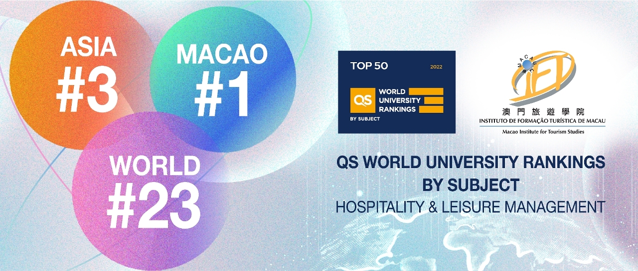 澳门旅游学院在QS 2022年世界大学「款待及休闲管理」学科排名中荣获全澳第一,同时跻身亚洲第三位及全球第二十三位。