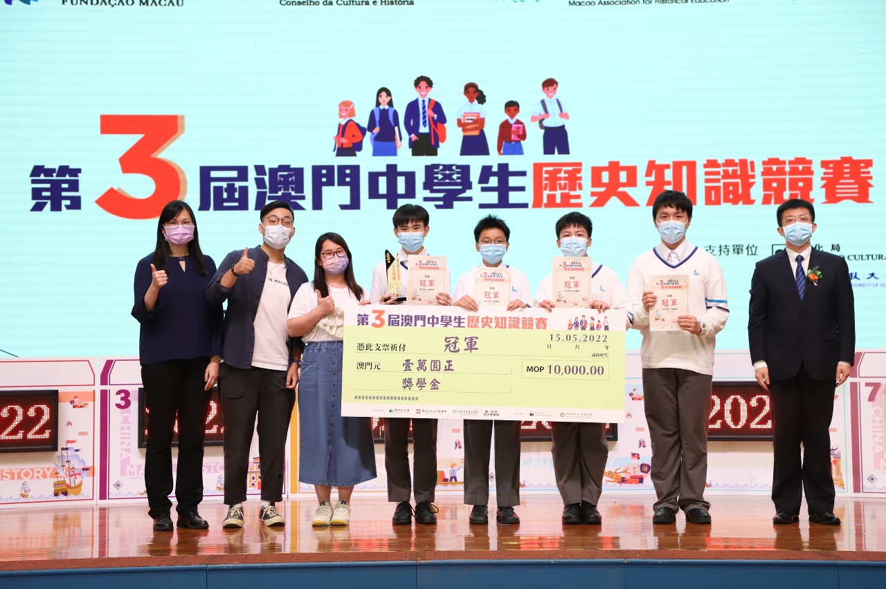 由澳门基金会及其历史文化工作委员会、澳门历史教育学会及澳门广播电视股份有限公司联合主办,文化局及澳门科技大学图书馆支持之“第三届澳门中学生历史知识竞赛”准决赛及决赛已于2022年5月15日(星期日)假濠江中学附属英才学校顺利举行,本届赛事共吸引了本澳33所学校、共151支队伍报名参加,反应相当踊跃。
