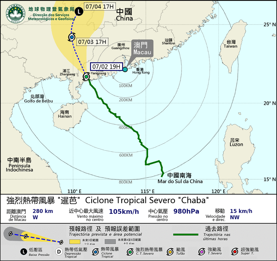 随着「暹芭」逐渐减弱及远离本澳,本澳风力已有所缓和,因此本局将于20时30分改发三号风球。改发三号风球后,由于仍受到「暹芭」相关的环流影响,今晚至明早本澳广泛地区仍吹强风,风力可达6至7级,天气仍然不稳定,间中有狂风骤雨及雷暴,亦不排除有暴雨的情况,请市民保持警惕,并密切留意本局最新天气资讯。